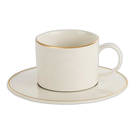 Bring a touch of luxury to your table with the Line Gold Band collection. Featuring a warm white finish and elegant gold rim – Ideal for restaurants, hotels, and events.
