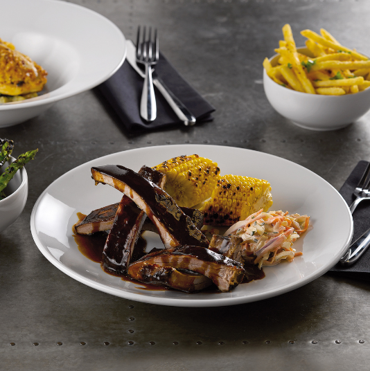 Featuring versatile shapes and signature pieces, Porcelite Standard is the go-to selection for displaying casual dining menus.